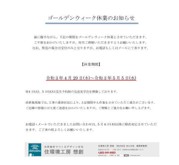 GW休業のお知らせ