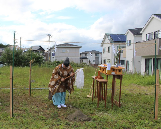 土地の神様を鎮める、地鎮祭を行います。一緒に工事に関わる安全を祈願します。この際に、ご近所様へのご挨拶もいっしょに行きましょう。