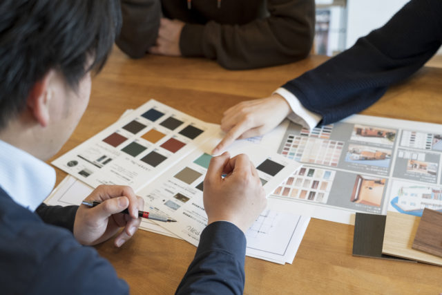 外部や内部、水回り設備、各扉の色など、サンプルを見ながら一緒に一つずつ選んでいきます。持ち込みしたい照明やインテリアなどあればそれもあわせて決めていきましょう。 仕上げや設備の最終確認を行ったらいよいよ着工です。